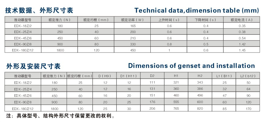 EDX系列電力電壓推動器為我公司自主研制開發(fā)的專利產(chǎn)品,是MYT1、YT1、ED系列的更新?lián)Q代產(chǎn)品,他克服了MYT1、YT1系列產(chǎn)品的漏油,動作不靈活、電機(jī)易燒壞,防護(hù)等級低、維修率高等諸多存在的問題,大大提高了產(chǎn)品的可靠性和使用壽命。已經(jīng)獲得國家專利和科技進(jìn)步獎。它適用于額定電壓380V,額定頻率50HZ的三相交流電源,是目前國內(nèi)理想的制動器驅(qū)動裝置,并可通過杠桿機(jī)構(gòu)完成往復(fù)、圓周、擺動等形式的快速短行程運(yùn)動,符合JB-/T10603-2006標(biāo)準(zhǔn)。